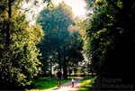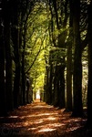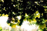 De door zon verlichte bladeren waar iedereen gewoon op stapt.